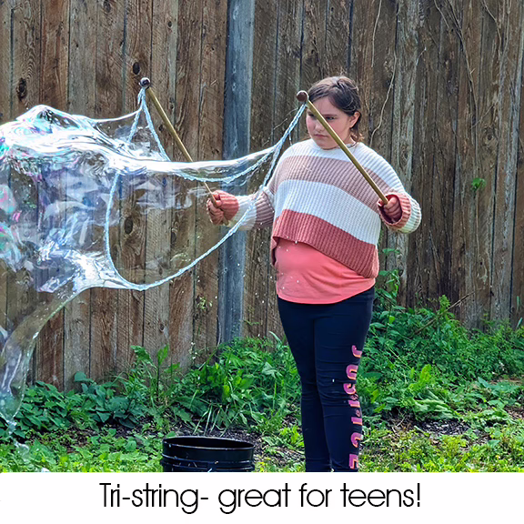 We’ve spent countless hours designing, testing, and making all of our bubble gear to ensure that EVERYONE regardless of their age or ability can make great bubbles in any weather, and we can accomodate any size crowd!