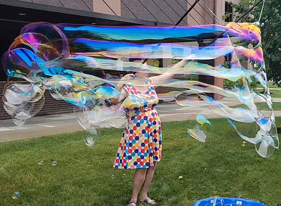 Yes- Karen Stark is an award-winning cosmetic chemist, and spent years developing our Big Bubble solution.  We’ve been doing bubbles at public events since 2018, and have designed, and made every bubble gadget!